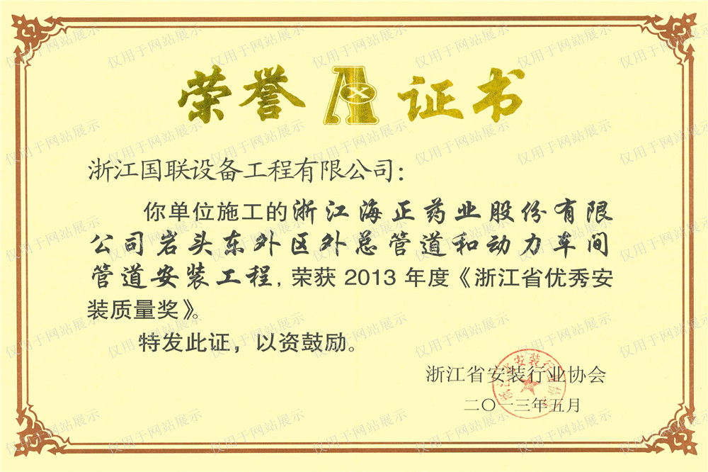 海正安装质量奖2013.5