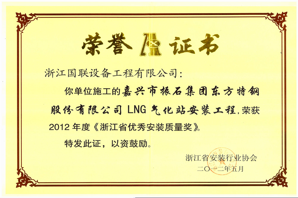 嘉兴东方特钢优秀安装质量2012.5