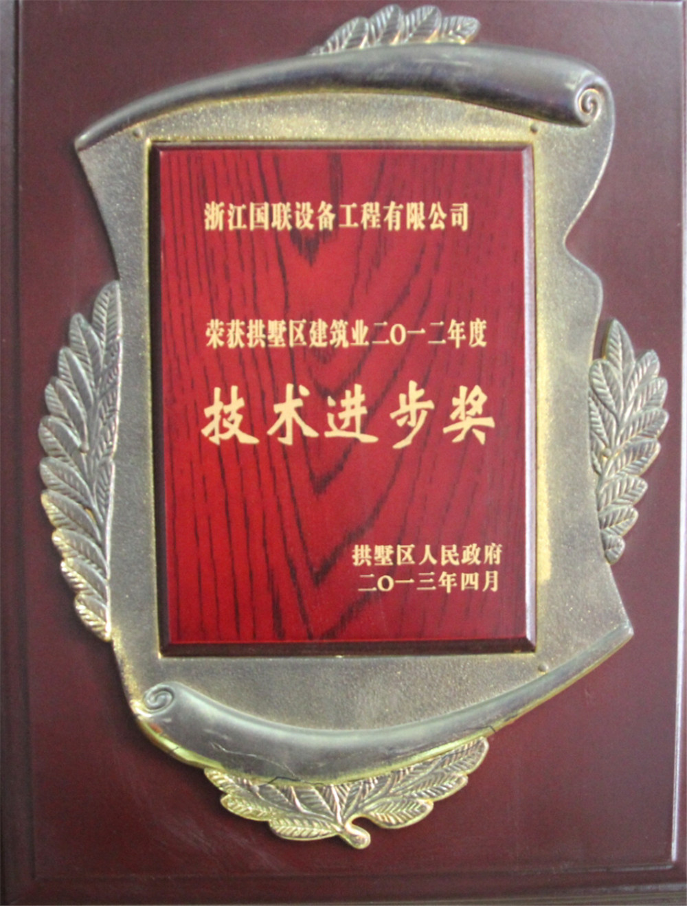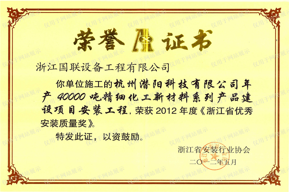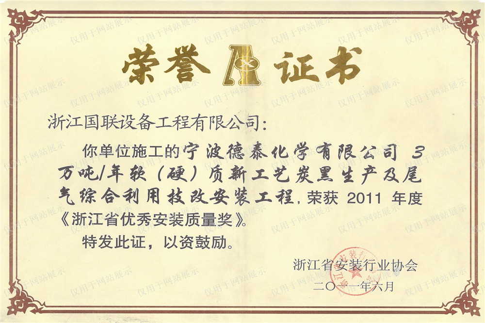 宁波德泰安装质量奖2011.6