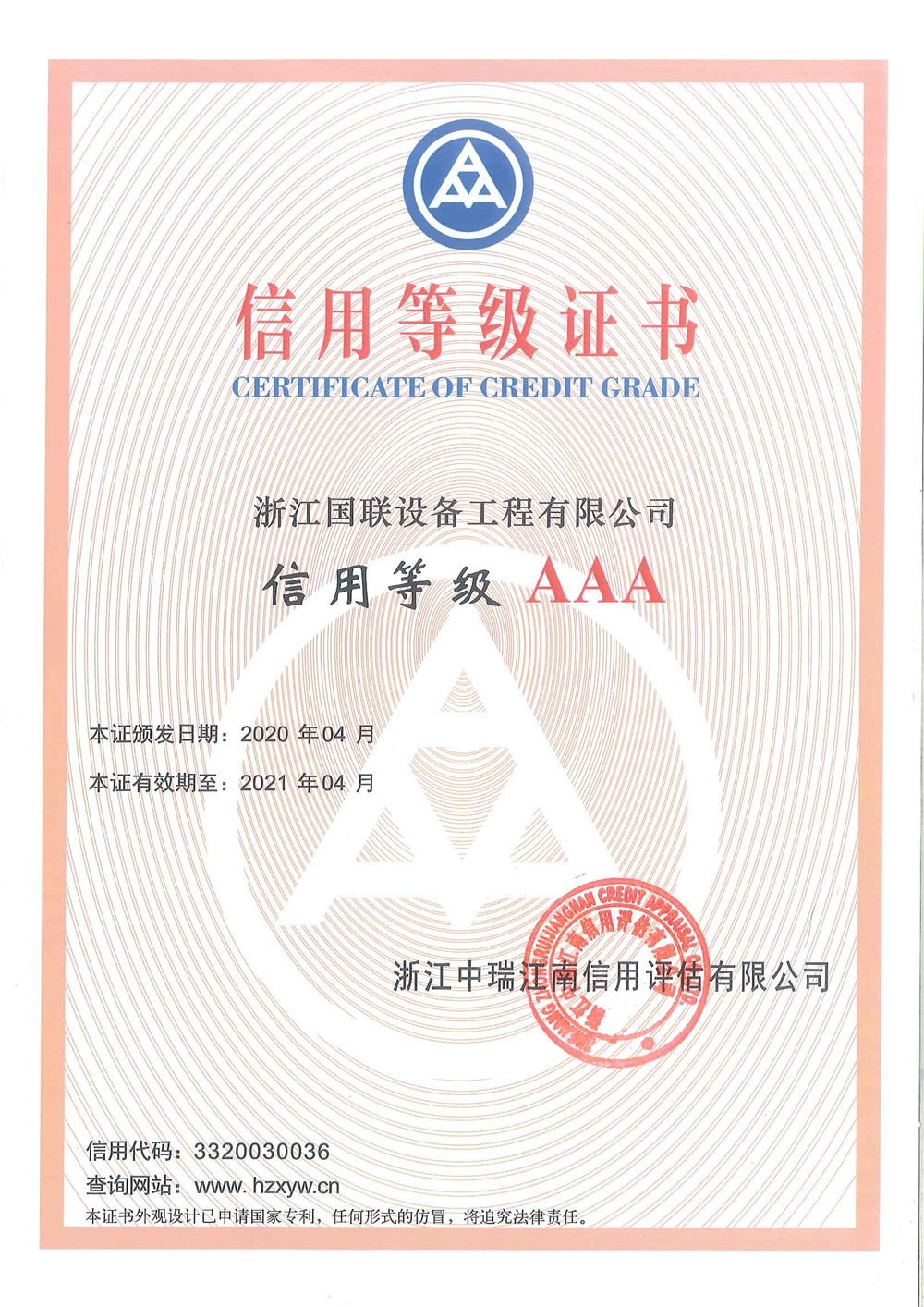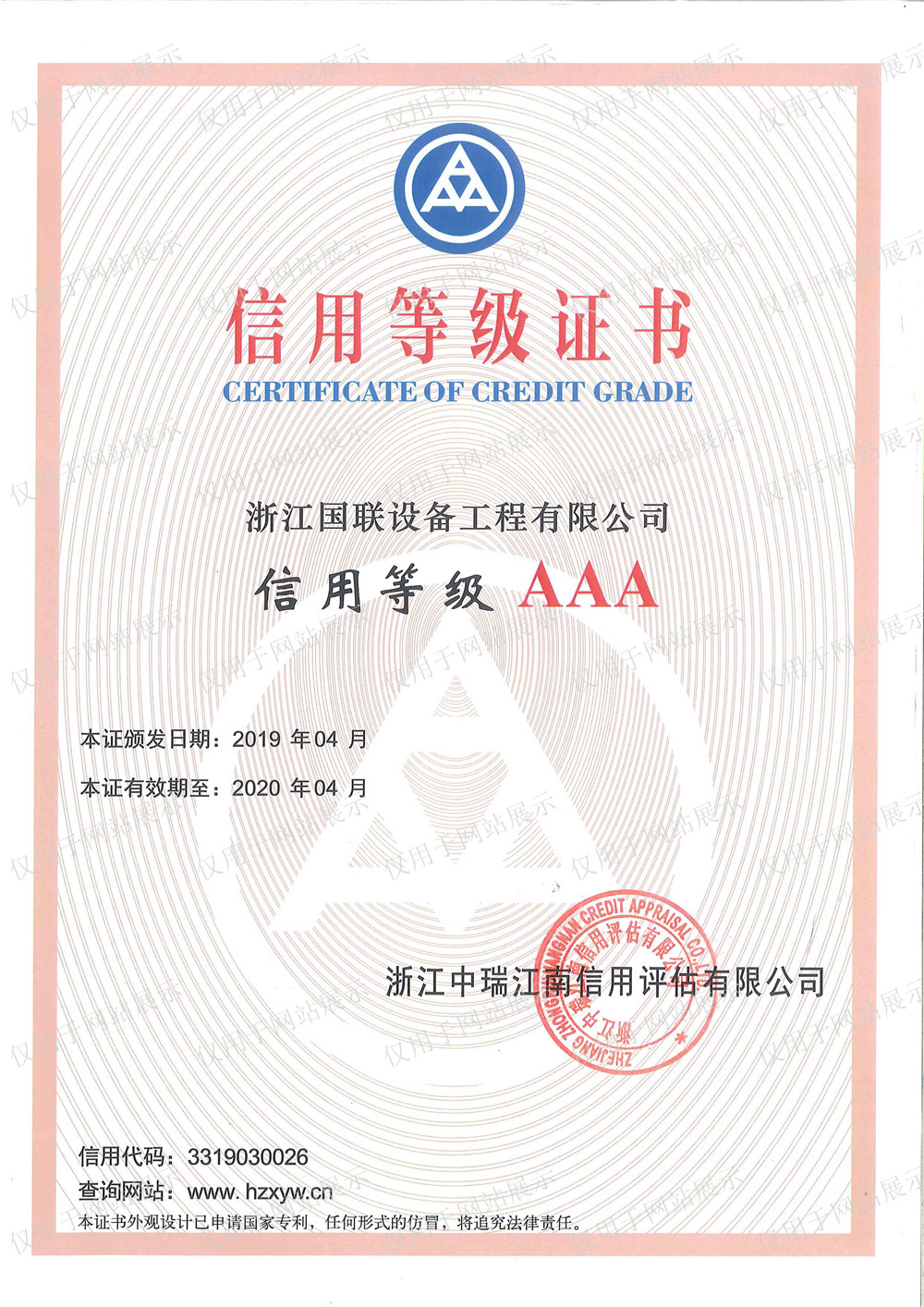 2020年信用评估机构AAA证书